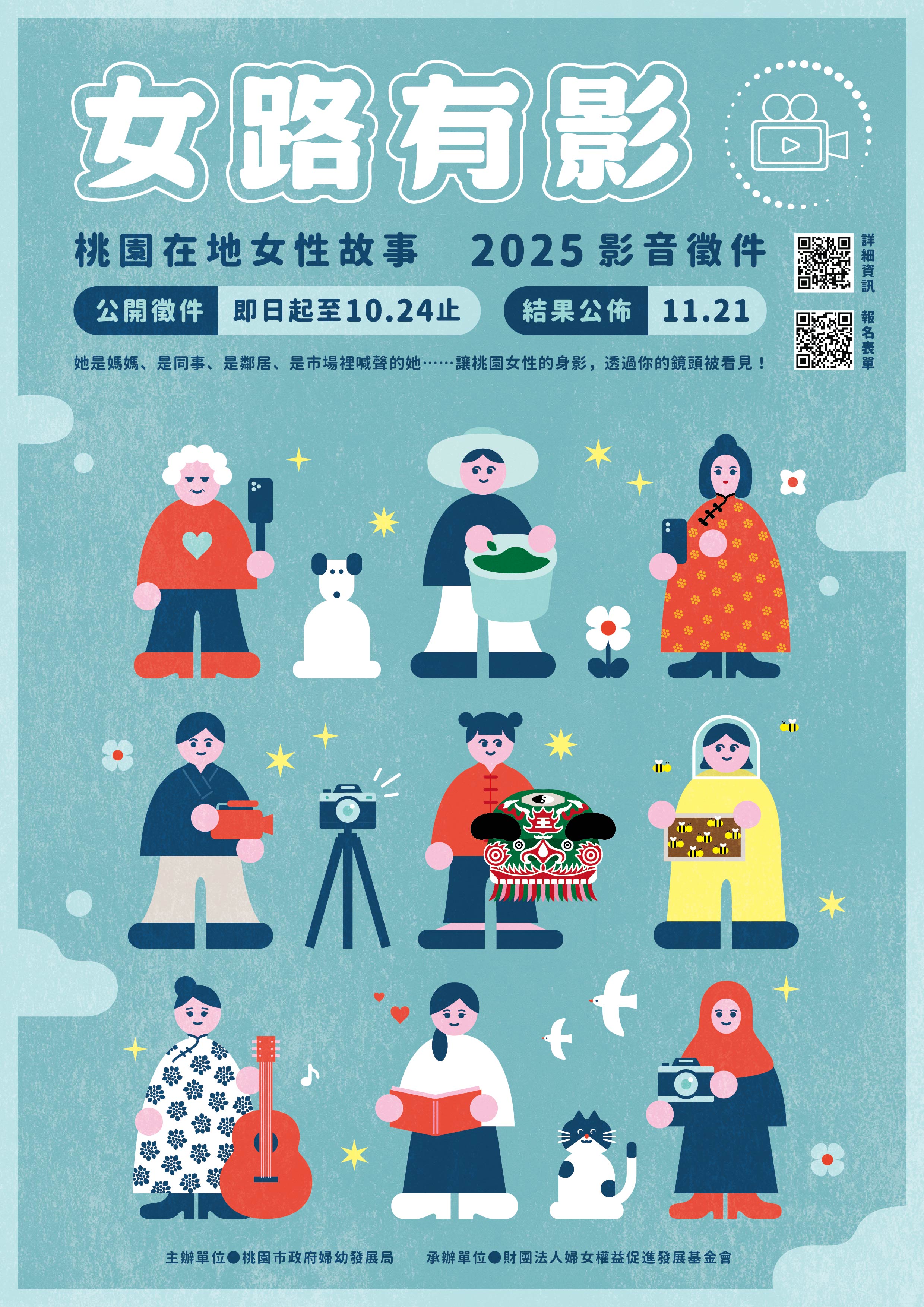 一、為提升本市在地女性故事之能見度及收集在地女性故事,辦理影音徵件活動,以「桃園女性的足跡與故事」為核心,呈現在地女性於生活、工作、家庭、文化、社區等面向的真實樣貌與貢獻,鼓勵從性別察點出發,關照地方記憶與女性經驗。
